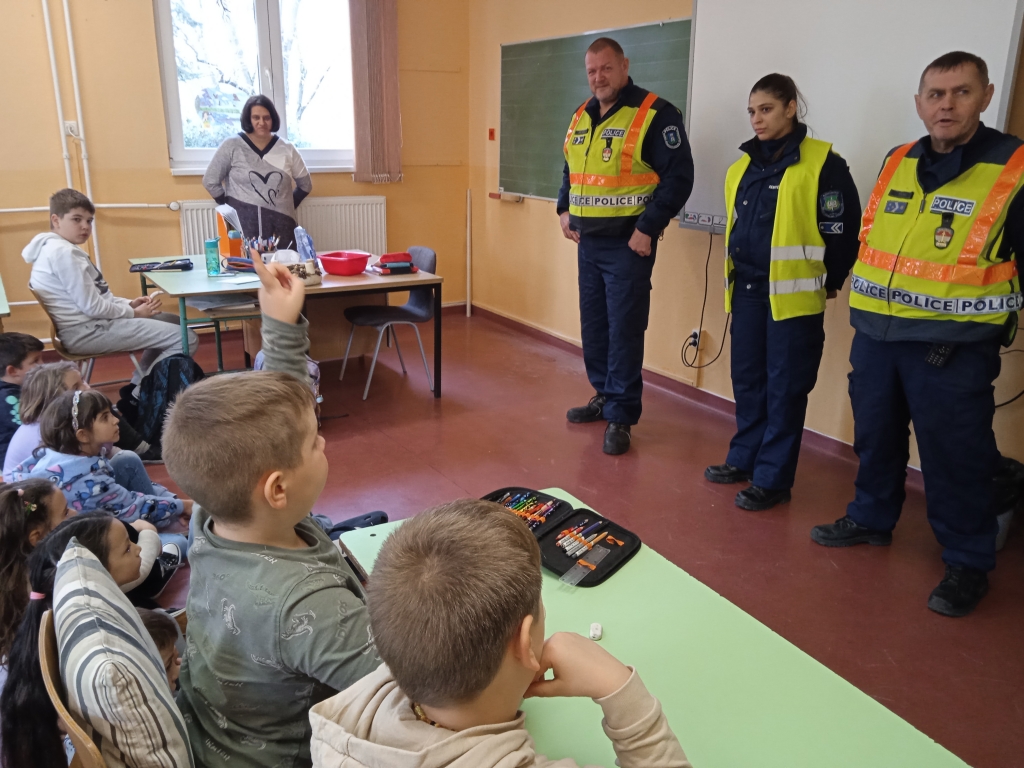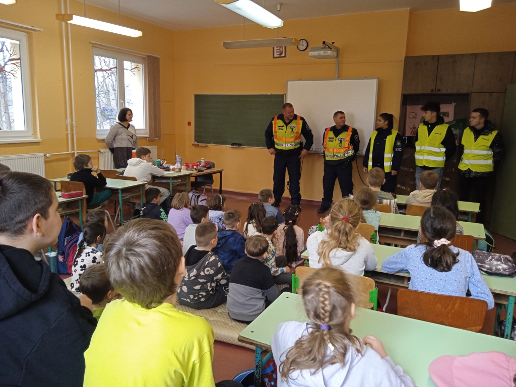 Iskolarendőrök és tanítványaik tartottak előadást az alsós diákjainknak a kerékpár és elektromos roller helyes használata témában.