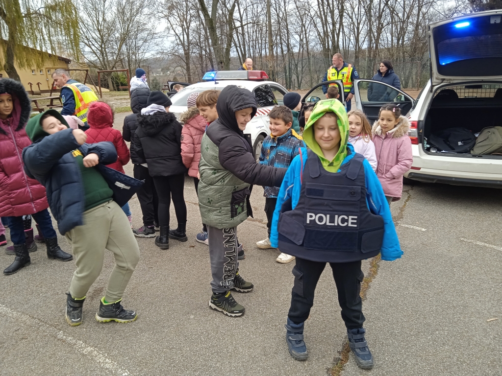 A előadás után nagy örömükre beülhettek a rendőrautókba, felhúzhatták a golyóálló mellényt és még bilincs is csattant a kezükön.