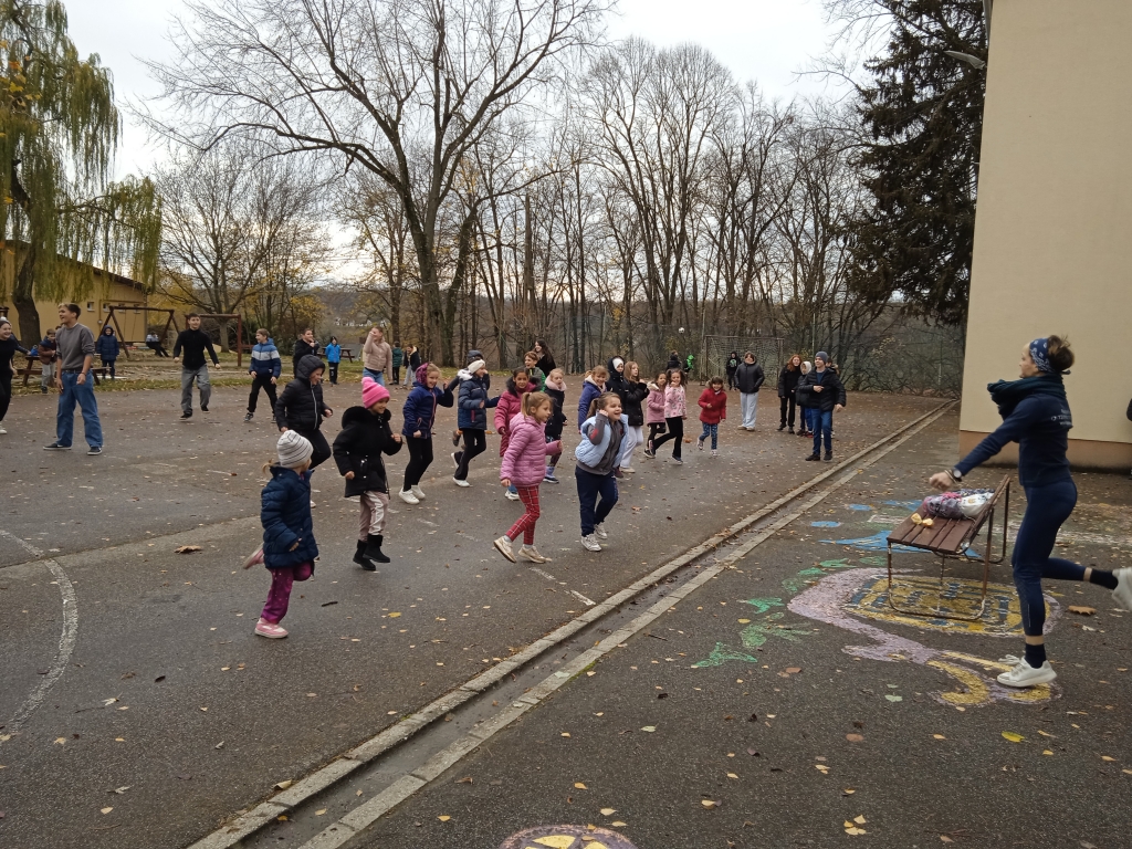 Gold Tímea tanárnő a szünetekben aerobik mozgásformával mozgatott át mindenkit.