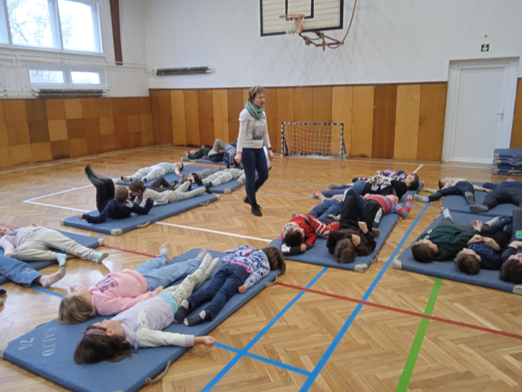 Testnevelés órák alatt Szendrő Zoltán tanár úr gerinctorna gyakorlatok tanításával erősítette meg a hátizmokat, figyelve a helyes testtartást is.