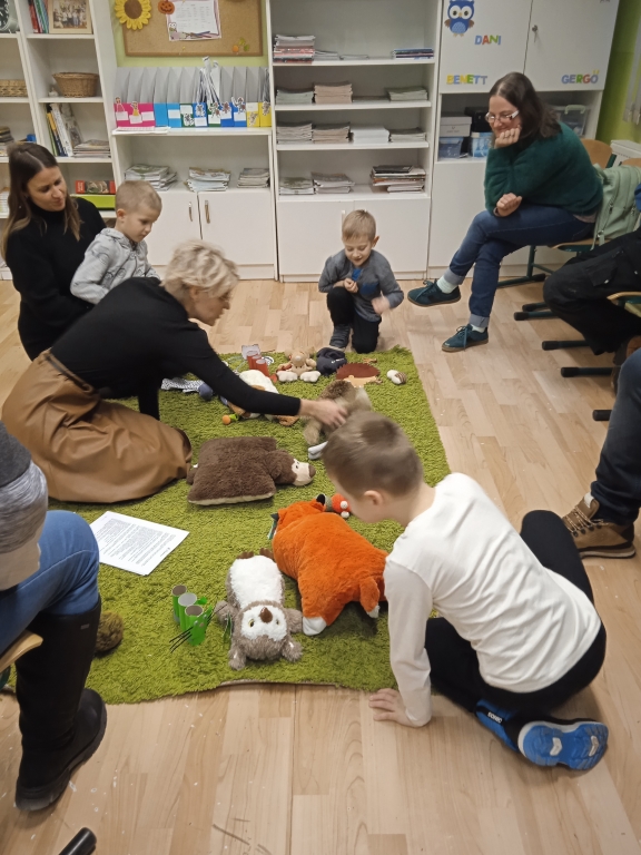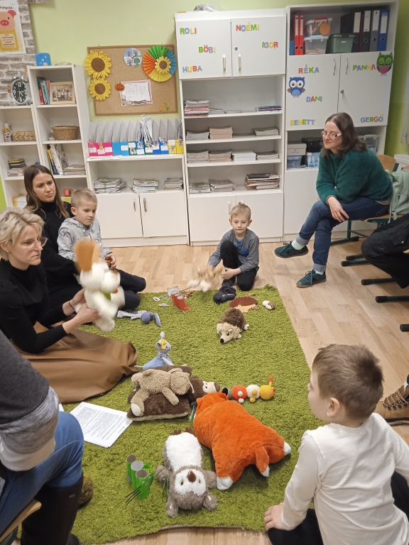 Nagy szeretettel fogadtuk a leendő első osztályos gyerekeket és szüleiket az iskolanyitogatón. Ezen a foglalkozáson megismerkedhettek az alsós pedagógusokkal, akik nagyon érdekes programmal készültek. A téma középpontjában a sündisznó állt. Meghallgattunk róla egy mesét, megtanultuk hol és kivel él, még a tüskéit is megszámoltuk majd papírból el is készítettük. Németül énekeltünk és mondókáztunk.