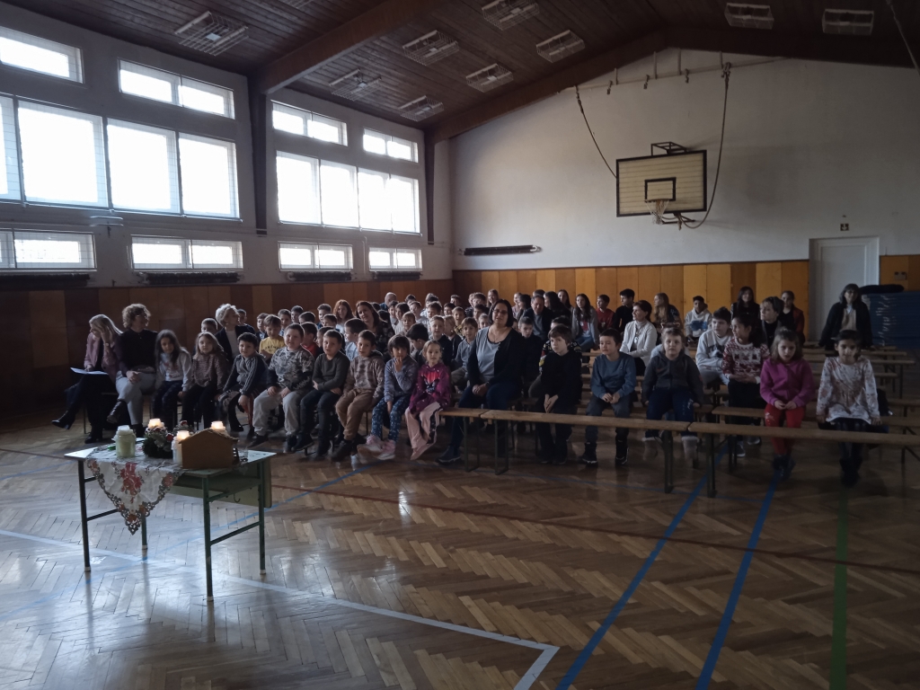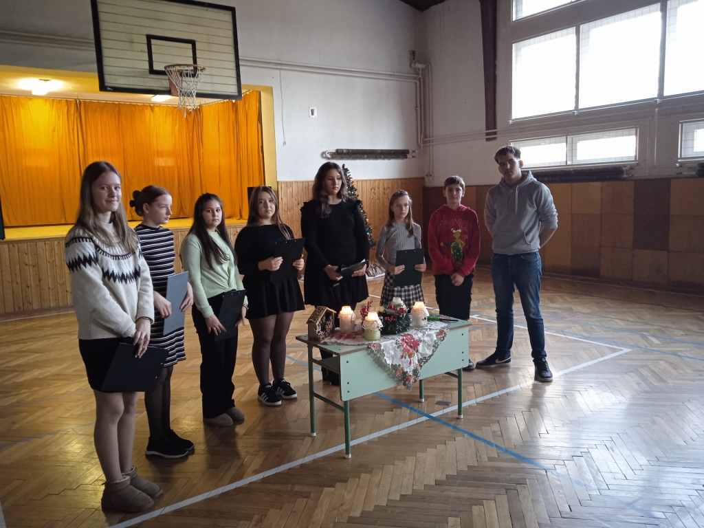 A 2025-ös év utolsó tanítási napján tartottuk karácsonyi ünnepünket. Meggyújtottuk a 4. gyertyát, a felső tagozatos tanulók versei után a társastánc csoport tagjainak vidám produkciója következett. Közös énekléssel zártuk műsorunkat.