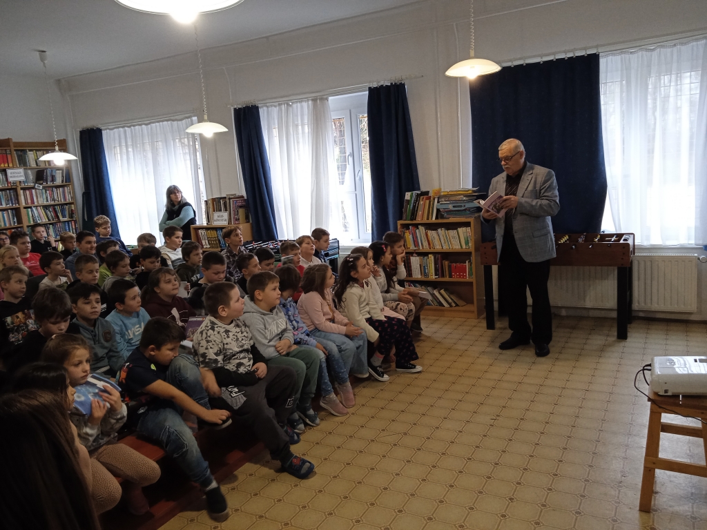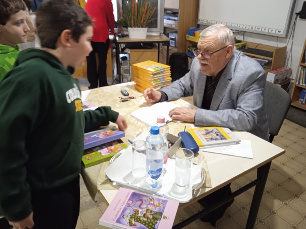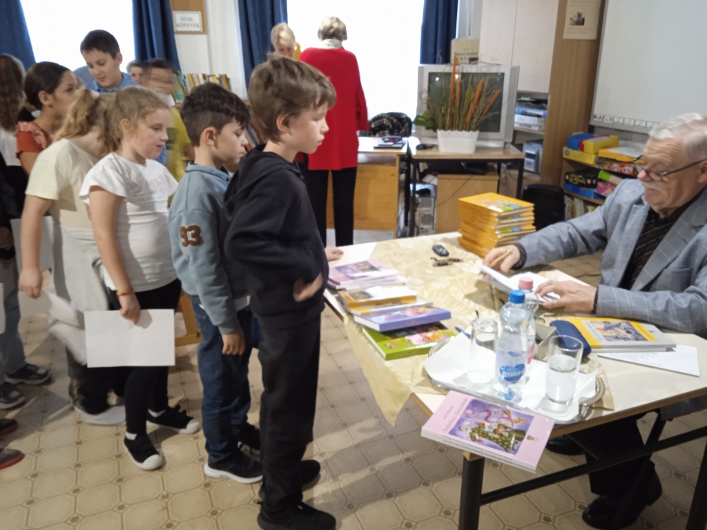 Tanulóink közül sokan készültek erre a napra, verseket tanultak a költő szerzeményeiből. Michaelis úr ezt nagy tapssal, ajándék könyvvel, dedikálással köszönte meg nekik.
