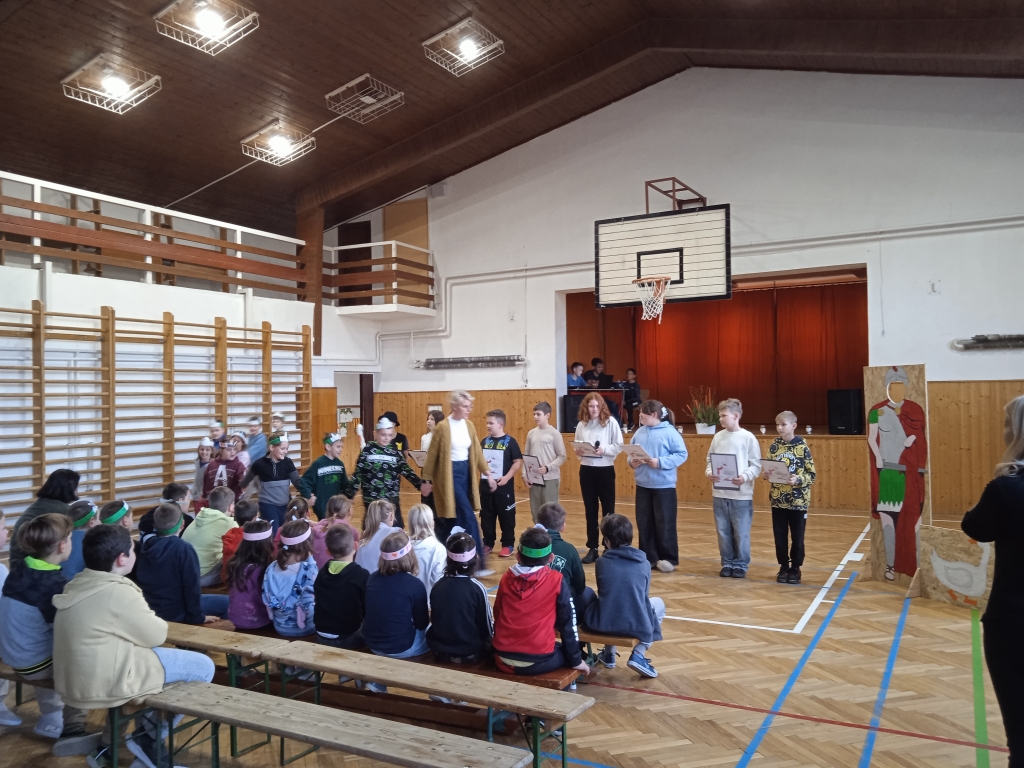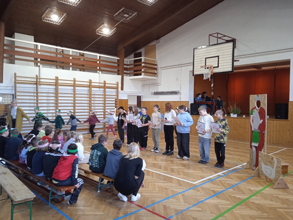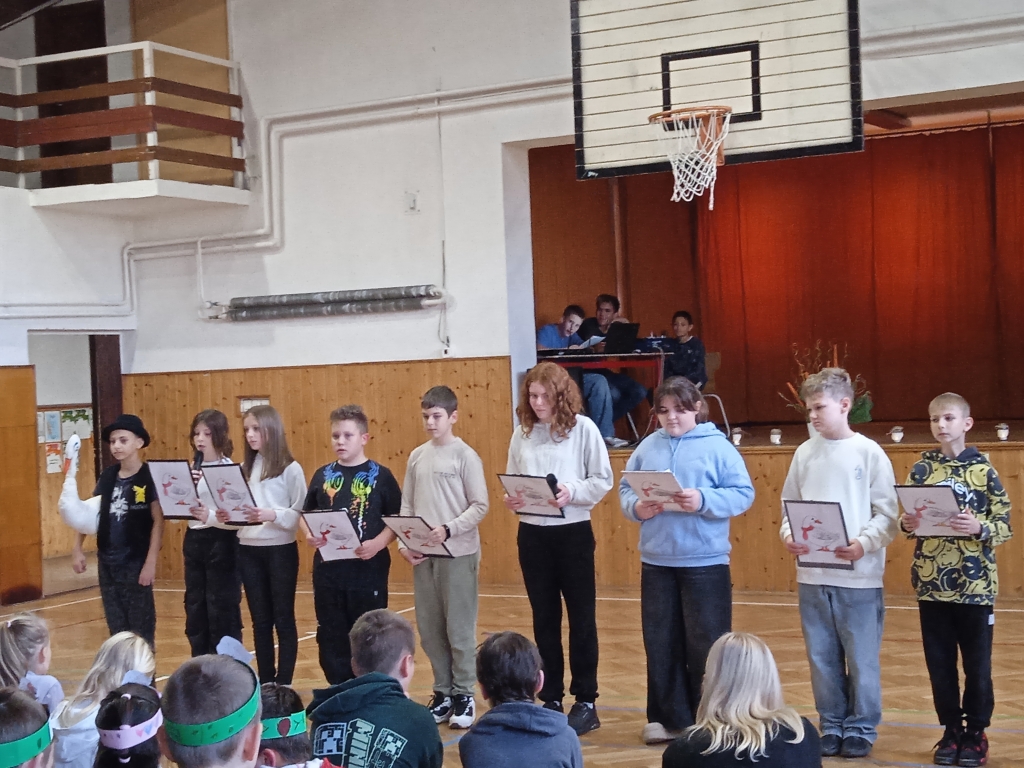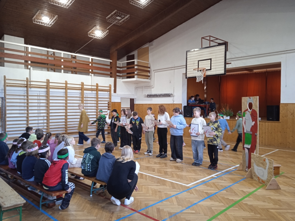 Az 5. osztályos diákok Márton életéről olvastak fel, majd közös éneklés után az alsó és felső tagozatosok külön feladatokon vettek részt. A kisebbek az udvaron libákat keresgéltek, mesét hallgattak, a nagyobbak kvíz feladatokat oldottak meg.